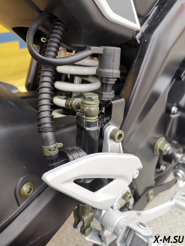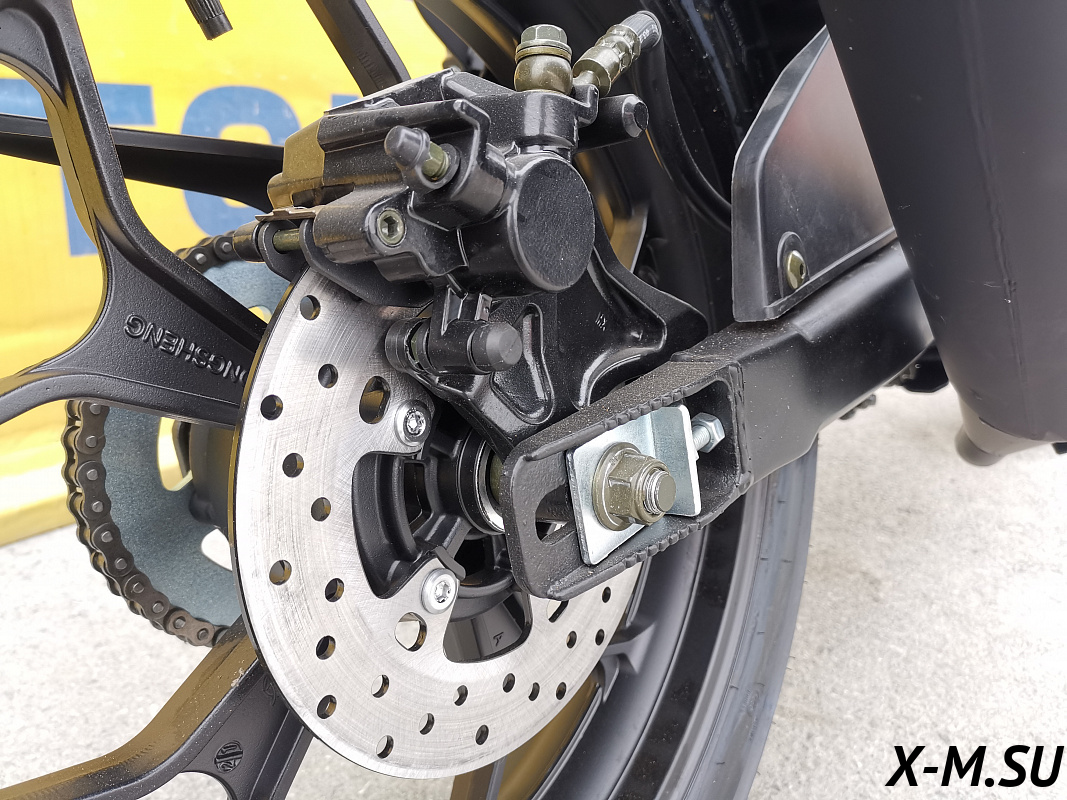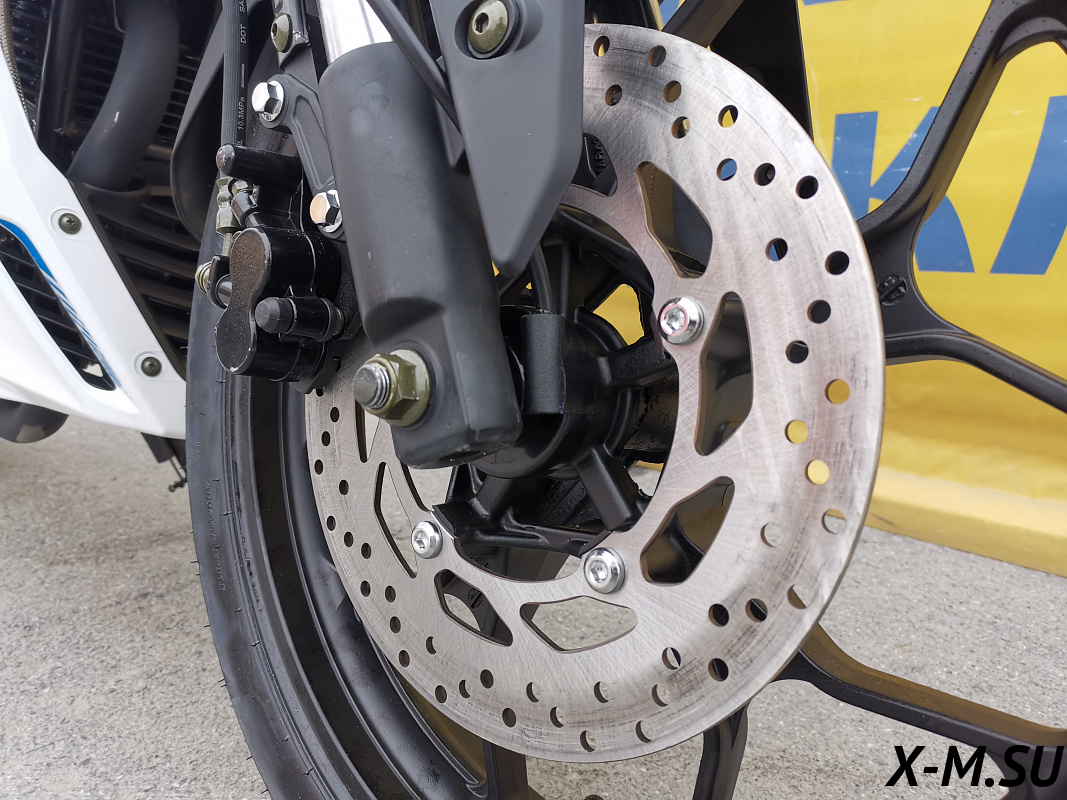 Также установлены двухпоршневые передние тормоза, литые алюминиевые обода , передняя вилка перевёрнутого типа с большим ходом, которая обеспечивает отличную управляемость для комфортного передвижения, как по городу, так и по бездорожью.